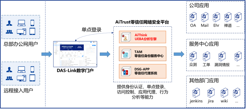 基于用户在数字化转型中现状和安全需求,遵循零信任安全基本理念,逐步规划实施零信任。用户十分重视本次开发,要求无论全新建设或者迁移,都需要基于零信任进行整体安全架构设计和规划,并尽量减少对员工工作的影响。