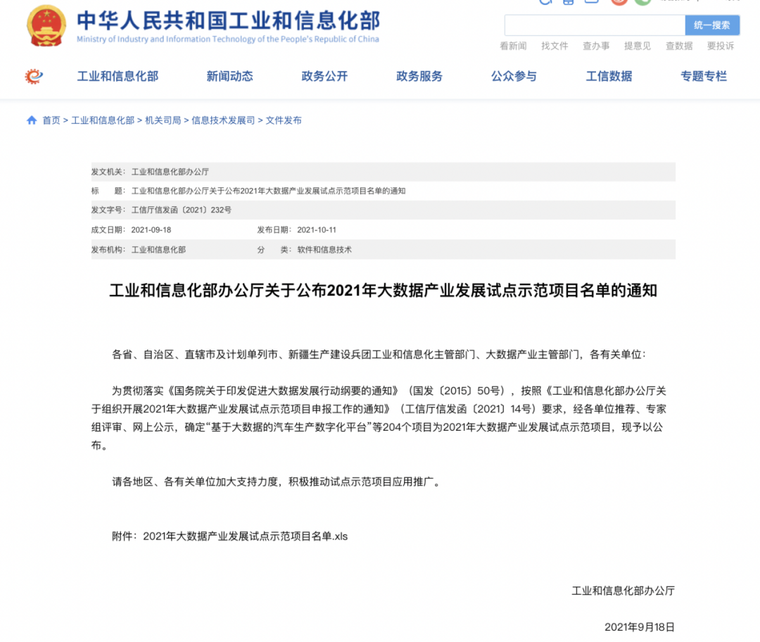 安恒信息入选工信部“2021年大数据产业发展试点示范项目名单”