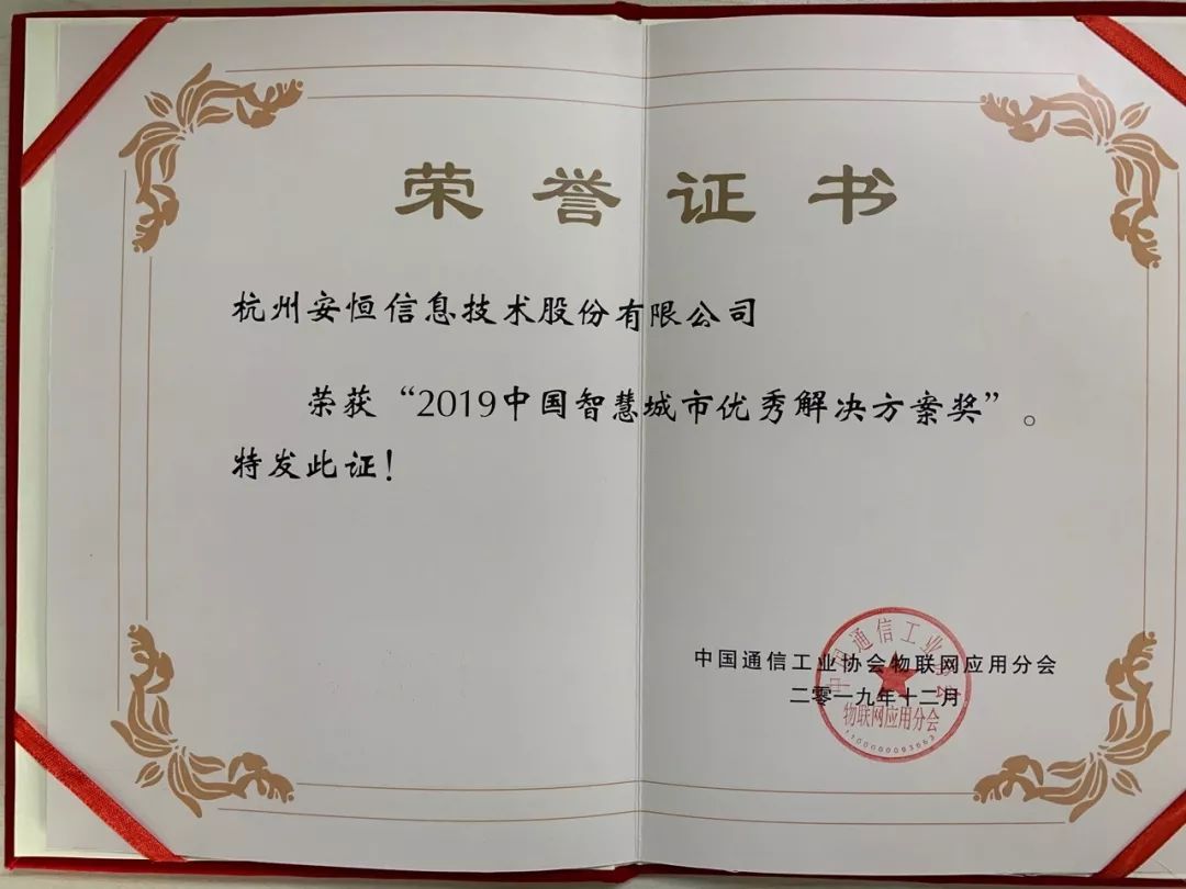 2019年12月20日,由中国通信工业协会指导、中国通信工业协会物联网应用分会主办,中国智慧城市规划与建设推进联盟协办的第十届物联网产业与智慧城市发展年会在北京隆重举办。大会设置2019年度“物联巅峰·智慧盛典”颁奖典礼,安恒信息荣获“2019中国智慧城市优秀解决方案奖”。