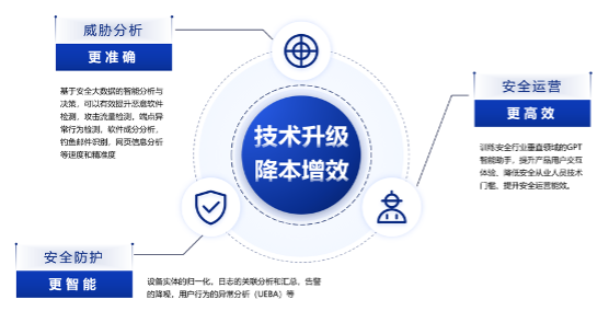 另一方面,AI和大模型技术也促进了安全产品和服务革新,有助于网络安全防护“盾”优化升级。生成式人工智能能极大提高风险识别效率,在一定程度上弥补现有网络人才缺口,让威胁分析更准确、安全运营更高效、安全防护更智能。