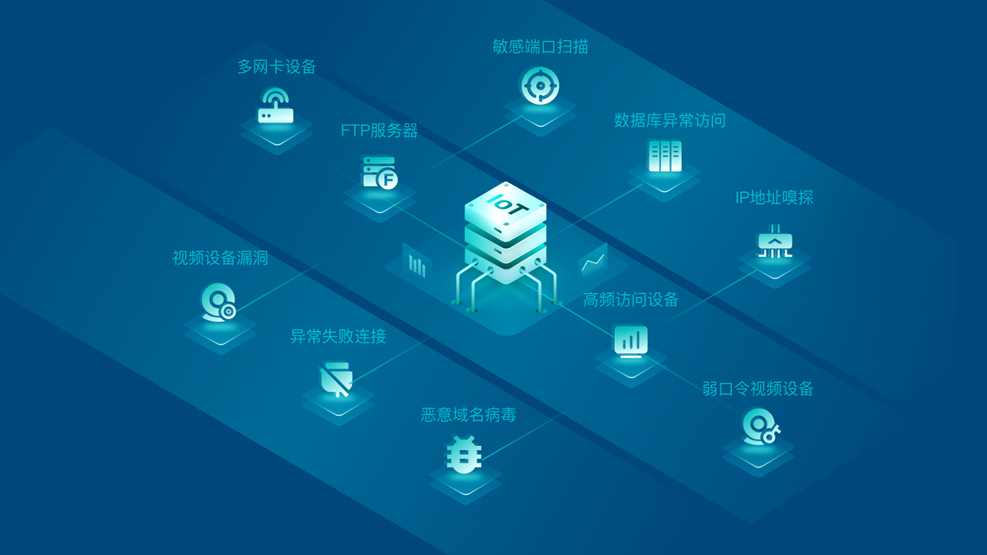 主动监测物联网内网设备同时连接专网和互联网的违规外联以及网中网等边界违规行为,从而预防物联网网络资源被不法人员利用,造成网内资源被破坏、数据被泄露以及非法入侵等安全事件