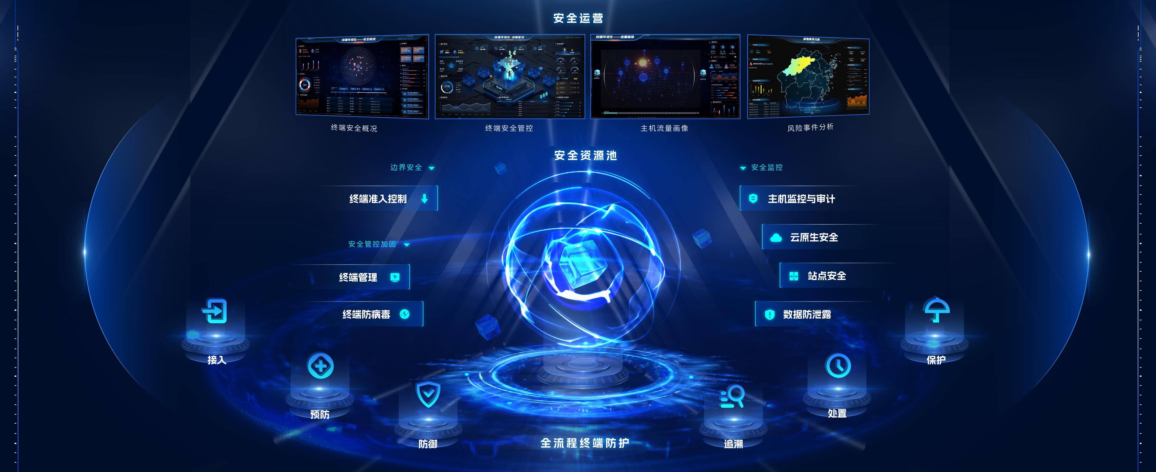 集成病毒查杀、主机监控审计、漏洞扫描及防护、入侵行为检测及告警、数据防泄露等核心技术的新一代终端安全一体化管控平台