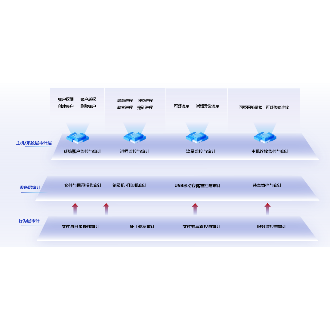 能提供系统层、设备层、行为层等等多个层级和维度的全方位的主机监控与审计能力,能为各类用户群里提供满足标准、满足政策法规的最佳监控审计方案